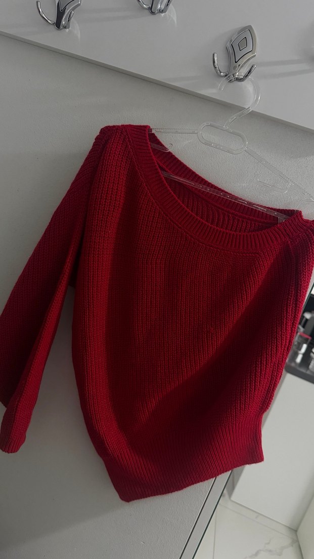 Kırmızı Kadın Triko tek omuz Salaş Bluz