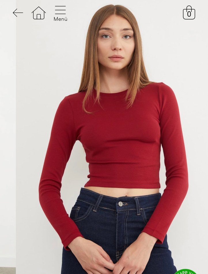 Kırmızı Kadın Uzun Kollu Crop Bluz