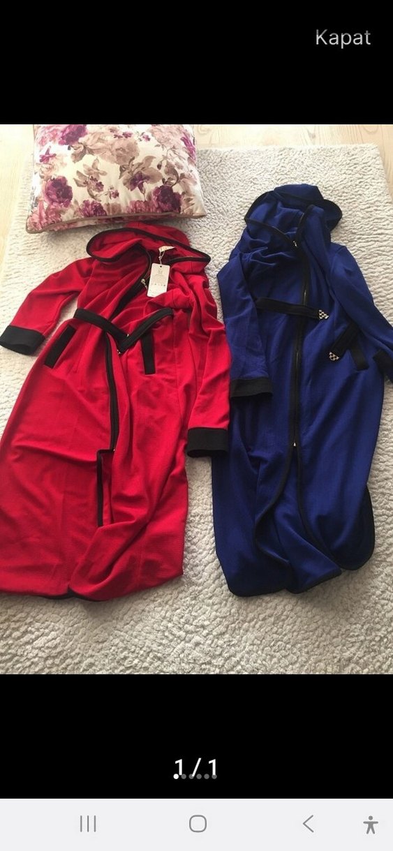 Koyu kırmızı renkte, kapüşonlu ve kemerli, uzun kollu, uzun kesim, sokak Rahat ve şık bir görünüm sunar. ️tek fiyat 300 ikili alırsan 500 yeni etiketli likralıdır