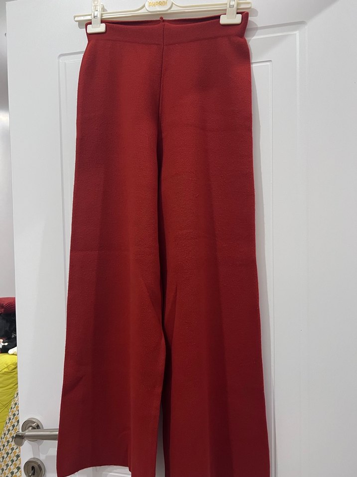 Kırmızı renkli, uzun boylu kadın triko pantolon. Rahat kesimi ve yumuşak sentetik kumaşıyla ofis için uygun, sade ve şık bir tasarıma sahip. Ağ kısmında hafif pamuklanma var kullanıma engel degıl sayfamda o renkte triko var kombin yapabılırsınız Marka temsili