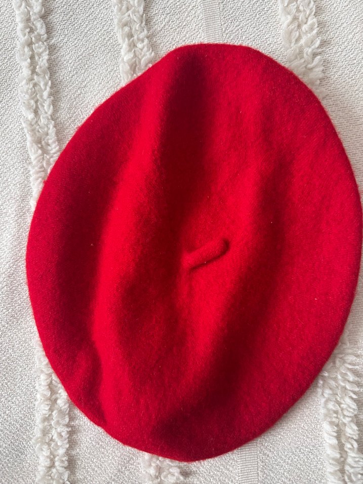 Yumuşak ve sıcak kumaştan, kürk detaylı kırmızı kadın yünü bere. Canlı ve sade tarzda, rahat kullanım için.