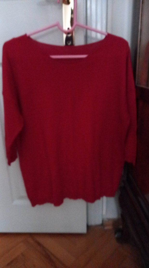 kırmızı renkte, triko hafif kayık yakalı, turuvakar kollu ve bol kesim kadın kazak. Minimalist ve normcore tarzıyla günlük kullanım için uygundur. sağ ve sol etek kısminda hafif tüylenme var