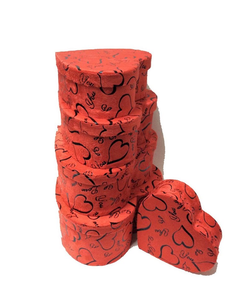 Kırmızı Kalp Desenli Hediye Kutusu Seti