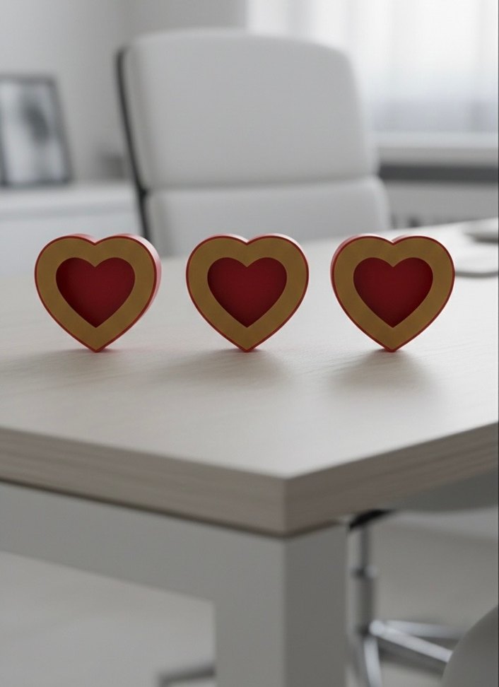 Kırmızı kalp şeklinde, düğmeli tasarıma sahip kadın kol düğmeleri. Canlı renkli ve çağdaş baskılı deseniyle cesur romantik akşamlar için uygun. ❤️