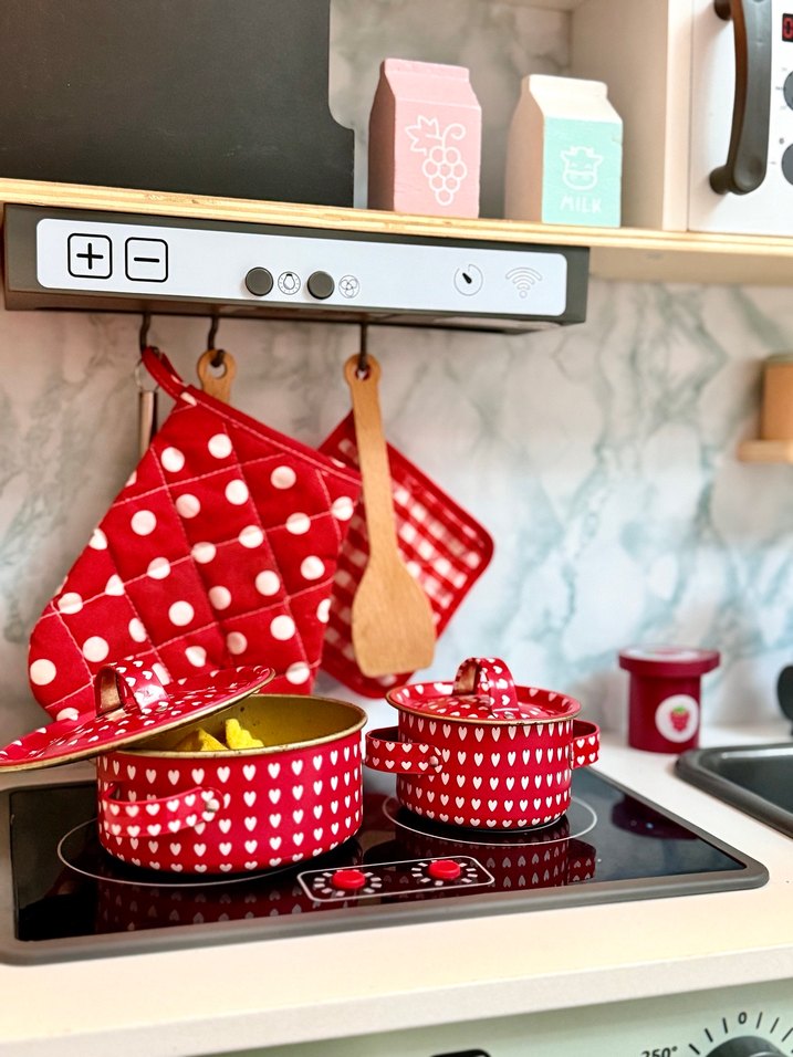 Kırmızı Kalp Desenli Mini Tencere Seti