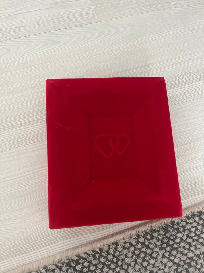 Kalp deseni bulunan kırmızı altın takı seti kutusu, takıları saklamak ve hediye için uygundur. ❤️üzerinde bir çizik var fotoğraflarda belli oluyor