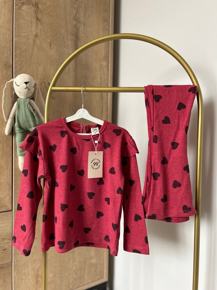 Kırmızı fitilli takım %100 pamuk, esnek kumaş 1. Kalite & Tam kalıp 3-4 / 4-5 yaş Aynı gün kargo