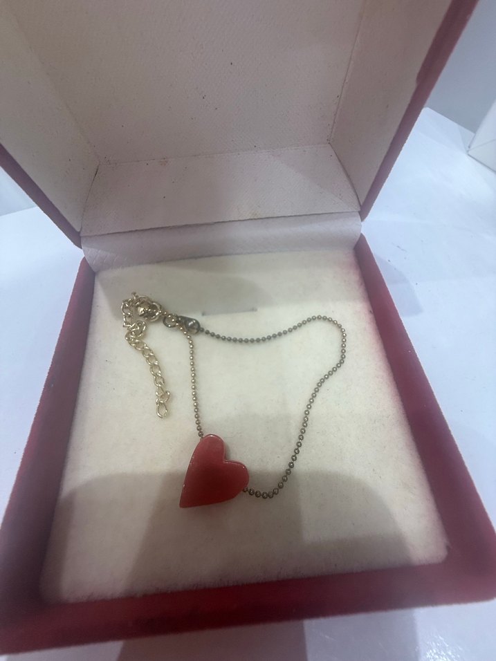 Kadın el zinciri ve kolye kırmızı kalp detaylı ince zincirle romantik ve minimalist tarz için uygun. ❤️