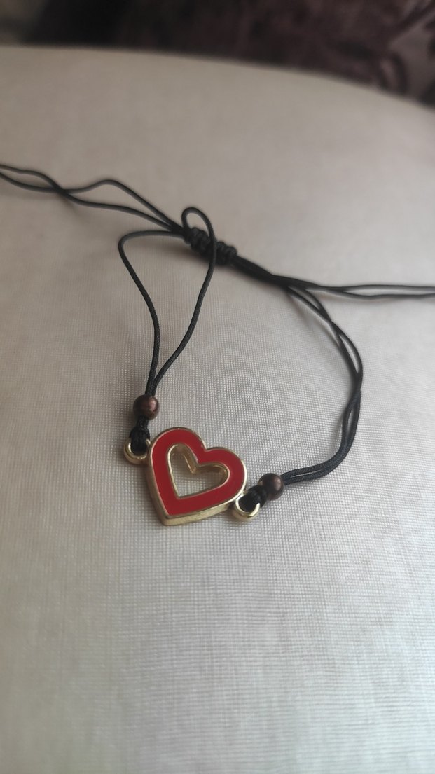 Elastik siyah ip üzerinde kırmızı kalp figürlü bohem tarzda bileklik, romantik akşamlar için uygun. ❤️