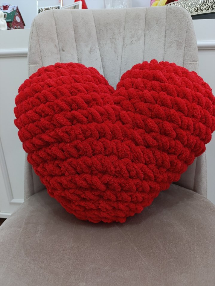 Canlı kırmızı kalp şeklindeki yastık, kalın ve yumuşak dokusuyla ortamınıza sıcaklık katar. ❤️