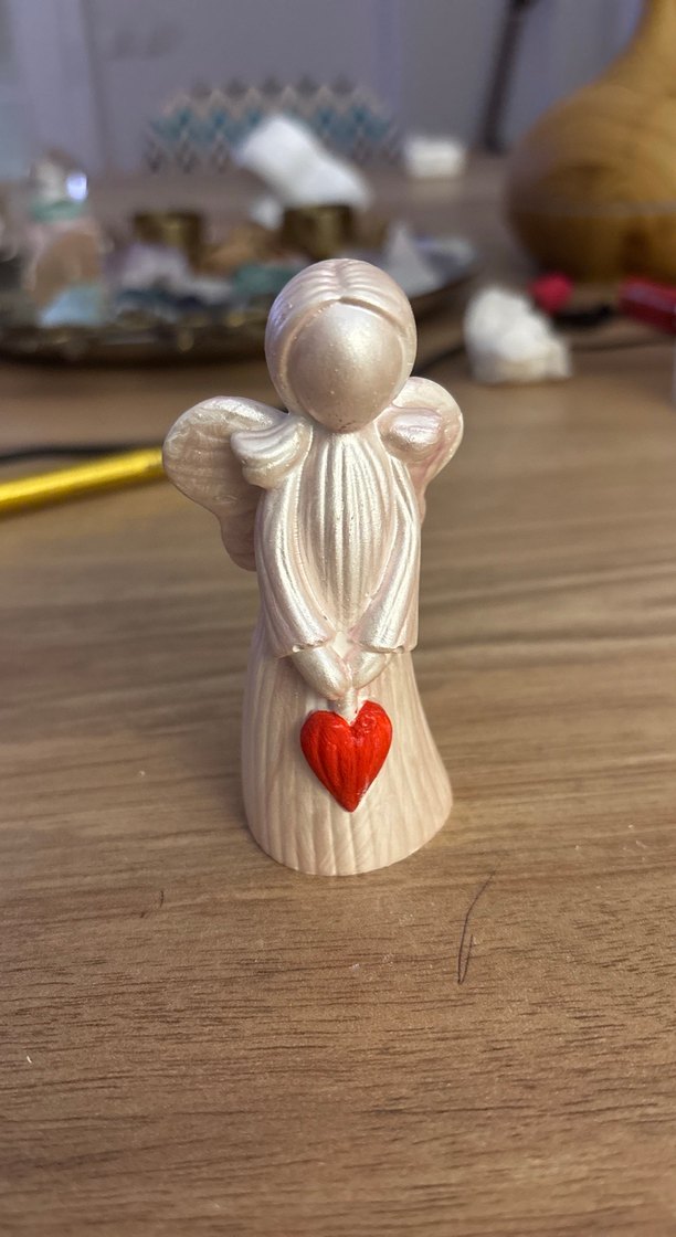 Kırmızı kalp tutan küçük beyaz melek biblo, pürüzsüz ve hafif malzemeden yapılmıştır. Basit detaylara ve zarif kanatlara sahiptir. ️
