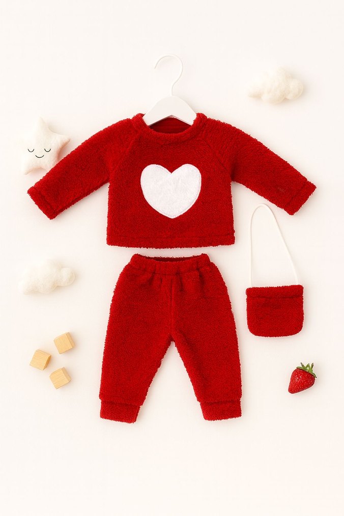 Uzun kollu, kırmızı örgü bebek kız takımı, beyaz kalp detaylı üst ve eşleşen pantolon ile küçük çanta içerir. 6,12,18,24 ay ürünlerdir.❤️ ürünler kendi üretimimiz  toptan ve perakende satışımız mevcuttur toptan fiyat için yorumlara yazabilirsiniz.…
