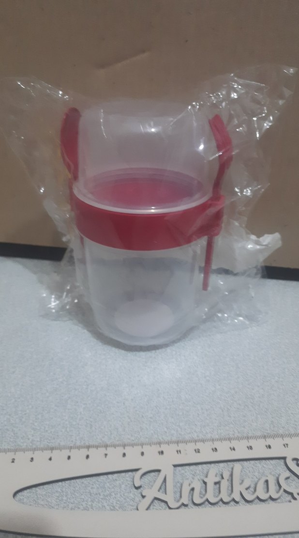 Şeffaf süt saklama kabı, kırmızı kapak ve taşıma kulpu ile pratik kullanım sağlar. Sütü taze ve güvenli tutar. #antika #dekor #oyuncak #koleksiyon #80 #80s #90 #90s #bardak