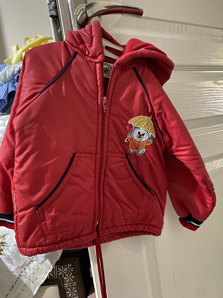 Kırmızı, fermuarlı ve kapüşonlu erkek çocuk montu. Yumuşak polar kumaştan, fit kesim ve renkli, desen içermeyen sokak stili. İki kez kullanıldı sıfır gibidir. Marka temsilidir.