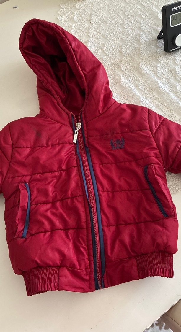 Kırmızı Kapüşonlu Erkek Çocuk Mont