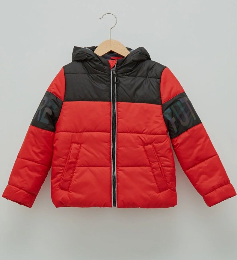 Kırmızı Kapüşonlu Erkek Çocuk Mont
