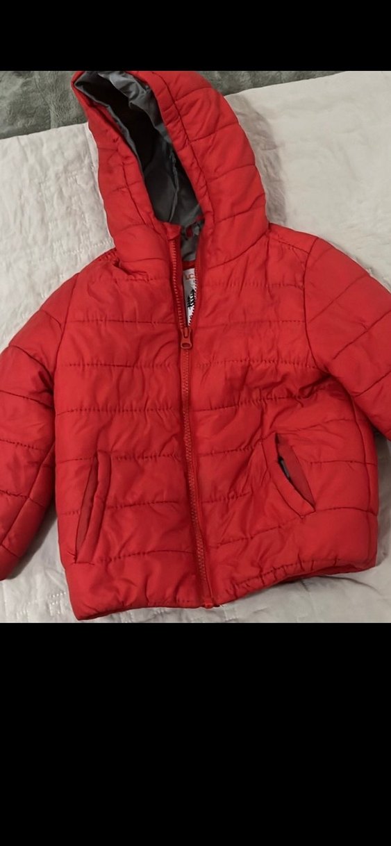 Kırmızı, kapüşonlu ve fermuarlı erkek çocuk montu. yumuşak ve sıcak kumaştan, rahat ve şık bir dış giyim ürünü. Şişme mont