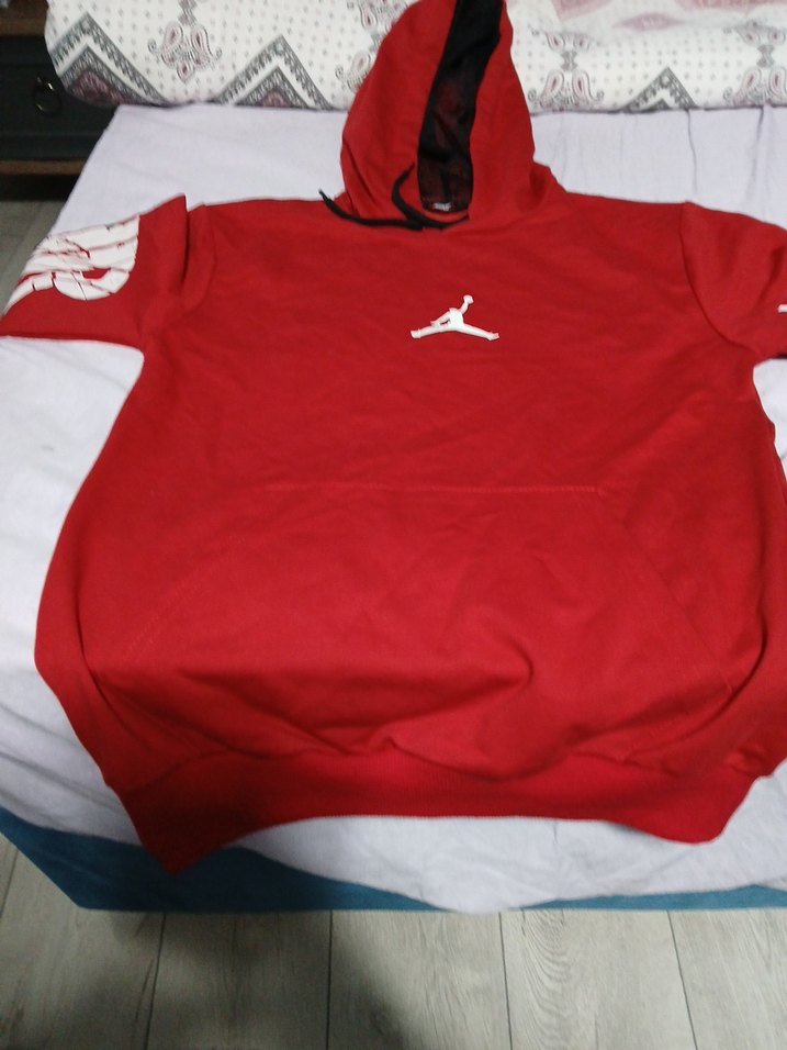 Renkli kırmızı kapüşonlu, uzun kollu erkek sweatshirt. Rahat kesim ve normal boyda, yumuşak ve sıcak kumaştan. Göğüste baskılı küçük logo ve kolda fermuarlı detay bulunur. Spor ve gündelik kullanım için uygundur.