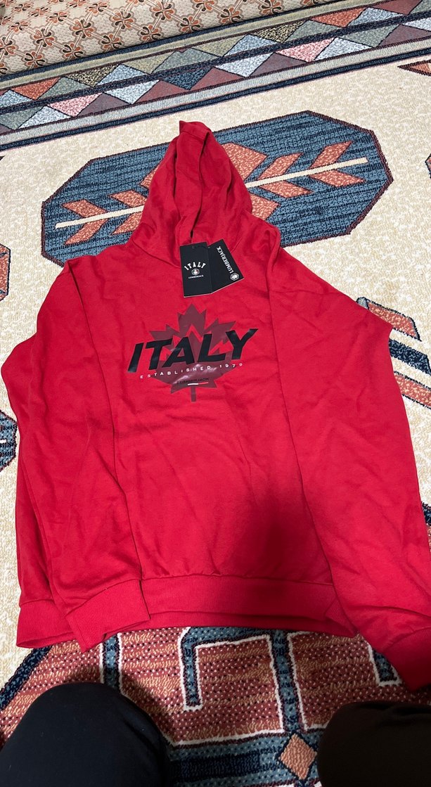 Kırmızı, kapüşonlu ve fermuarlı bu erkek sweatshirtü, uzun kollu ve baskılıdır. Günlük kullanıma uygun, rahat ve yumuşak dokuludur.