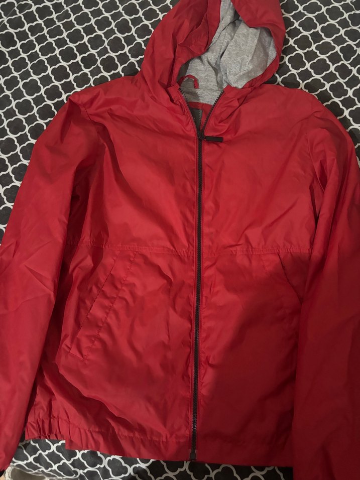 Kırmızı Kapüşonlu Erkek Yağmurluk