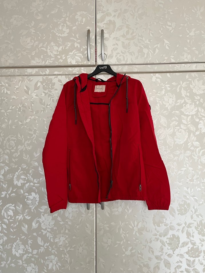 Kırmızı Kapüşonlu Fermuarlı Kadın Ceket