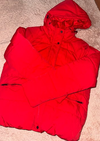 Kırmızı Kapüşonlu Kadın Kış Montu