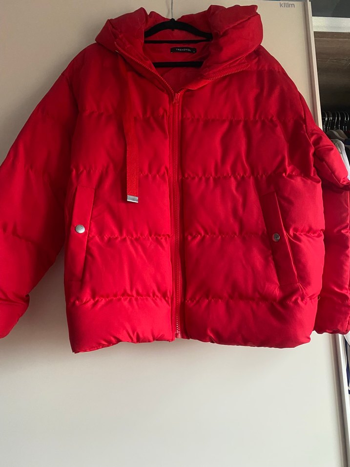 Kırmızı Kapüşonlu Kadın Kışlık Mont