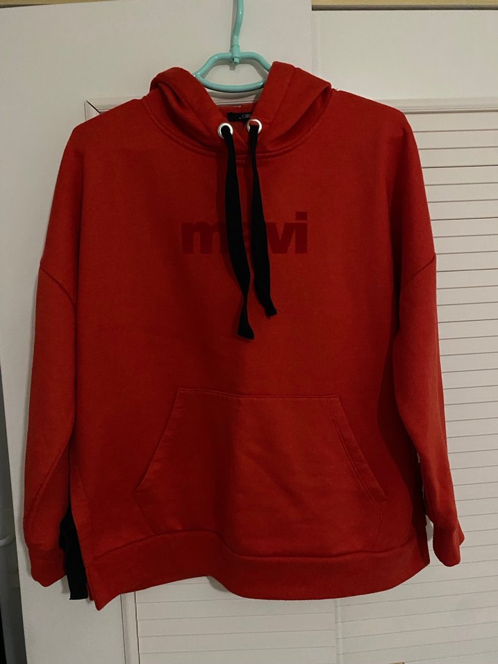 Kırmızı Kapüşonlu Kadın Sweatshirt