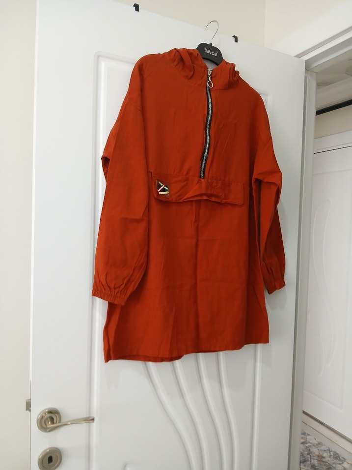 Kadın sweatshirt, kapüşonlu ve uzun kolludur. Bol kesim ve kısa boydur. Önü fermuarlıdır ve sentetik kumaştan yapılmıştır. ️