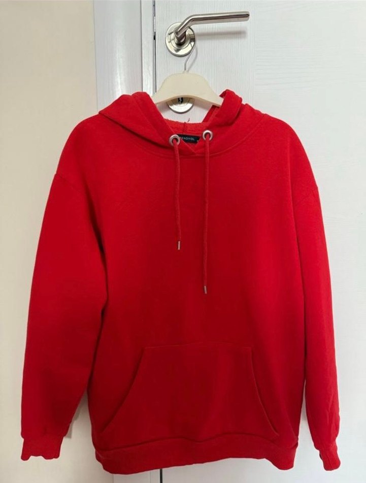 Kırmızı Kapüşonlu Kadın Sweatshirt