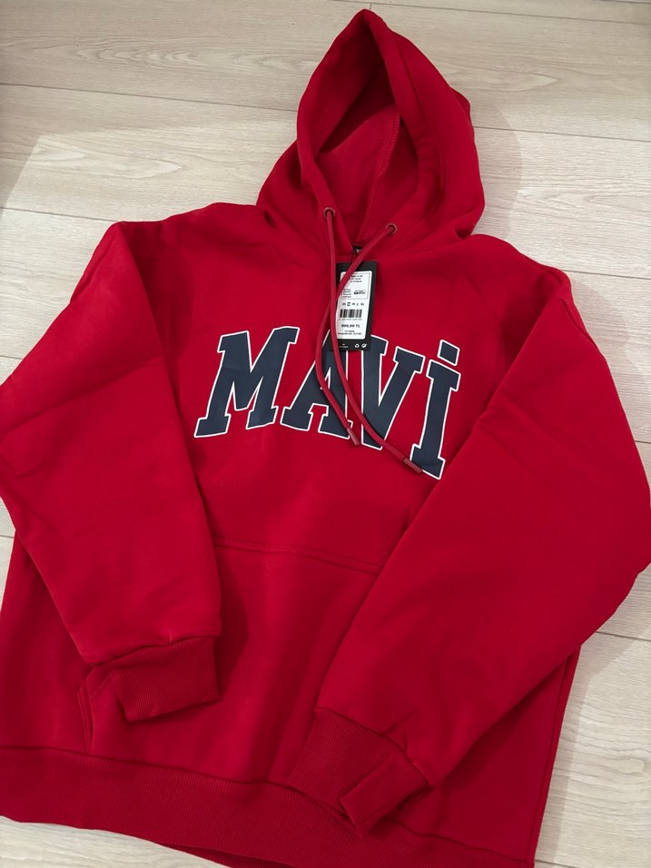 Kırmızı kapüşonlu sweatshirt, önünde renkli Mavi baskısı bulunur. Uzun kollu, bol kesim ve yumuşak, sıcak örme kumaştan üretilmiştir. Spor ve rahat kombinlere uygun ürün orjinaldir her beden mevcuttur.