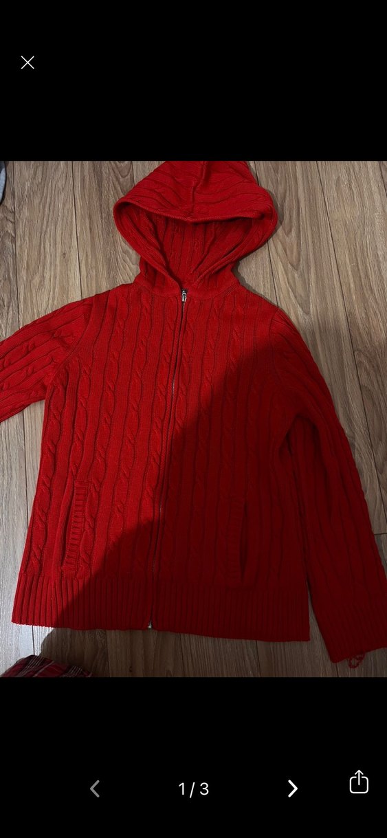 Kırmızı Kapüşonlu Örgü Kadın Kazak