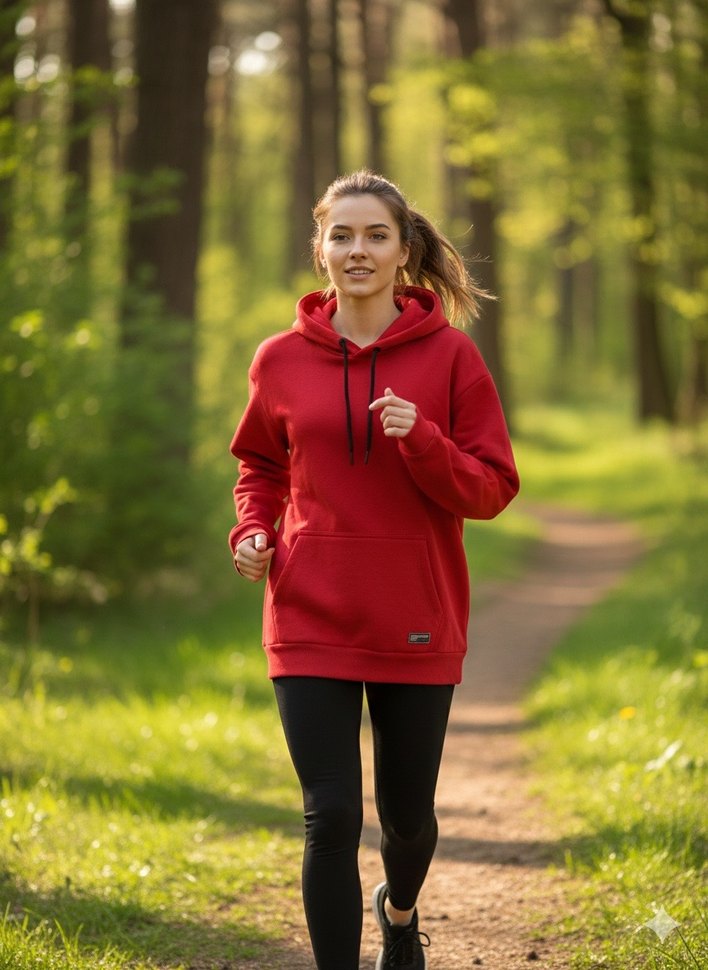Kırmızı, uzun kollu, yuvarlak yaka ve bol kesim sweatshirt, yumuşak ve sıcak kumaştan üretilmiştir. Dış mekan ve sokak stili için zahmetsiz şıklık sunar. Tesettüre uygun boydadır.