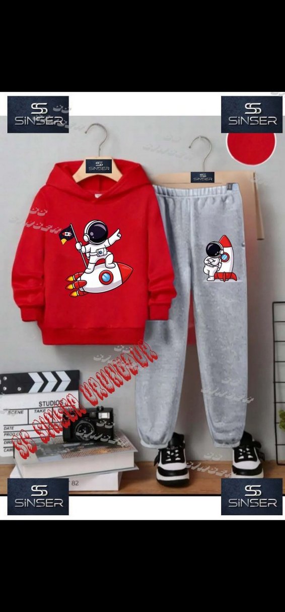 Kırmızı kapüşonlu sweatshirt ve gri eşofman altından oluşan takım, astronot baskılıdır. Sweatshirt bisiklet yaka, eşofman bol kesim ve Velcro merhaba . 2 ve 17 Yaşa Kadar Beden mevcuttur Şardonlu