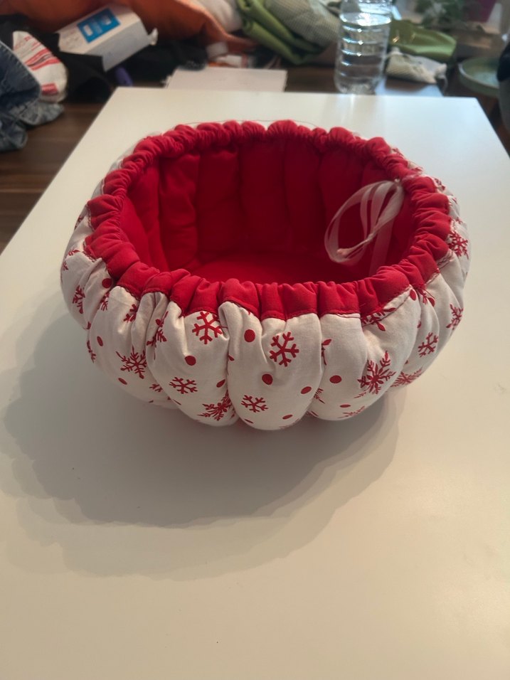 Kırmızı iç kısmı ve beyaz dış yüzeyinde kırmızı kar tanesi desenleri bulunan renkli saklama sepeti. Yumuşak kumaş ve bağcıklı detay kullanım kolaylığı sağlar. ❄️