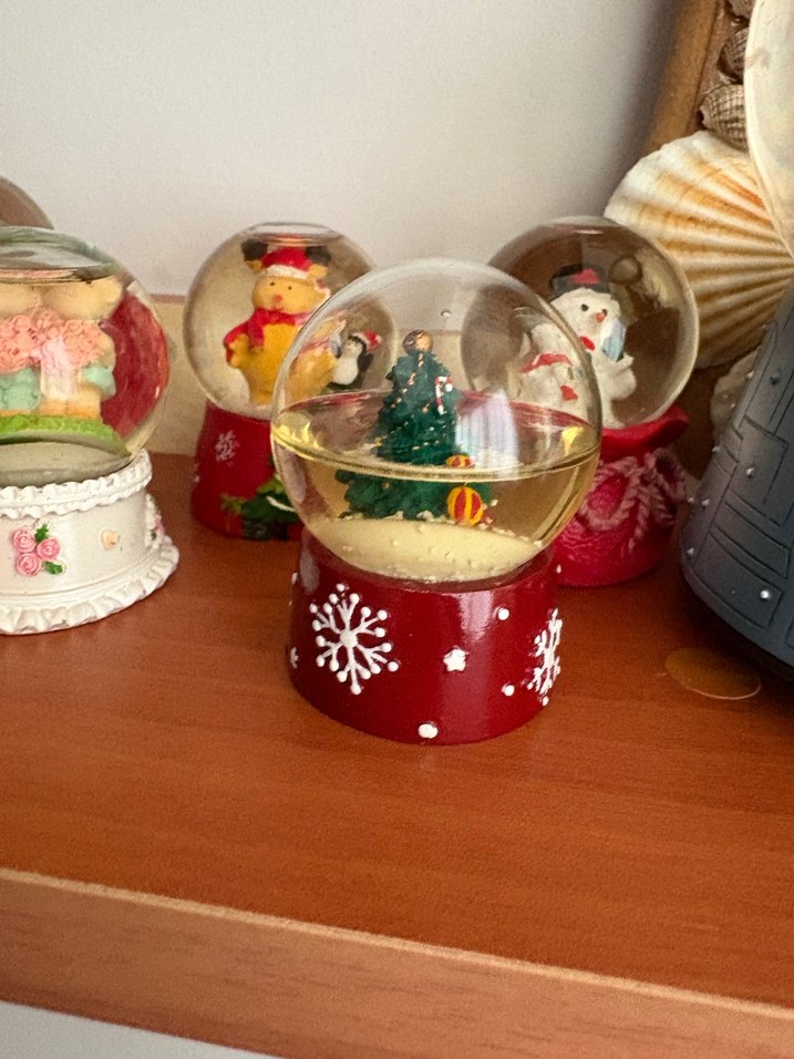 İçinde Noel ağacı bulunan, tabanı beyaz kar tanesi desenleriyle süslü kırmızı kar küresi figürüdür. İçindeki su yarıya indiği için bu fiyattır başka kusuru yoktur