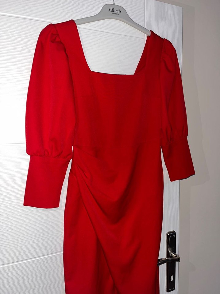 Bu kırmızı abiye elbise, drapeli tasarımı, kare yakası ve askılı kollarıyla öne çıkar. kumaşı, minimalist ve yenilikçi tarzı tamamlar. ❤️bacak arasından yana yırtmaçlı