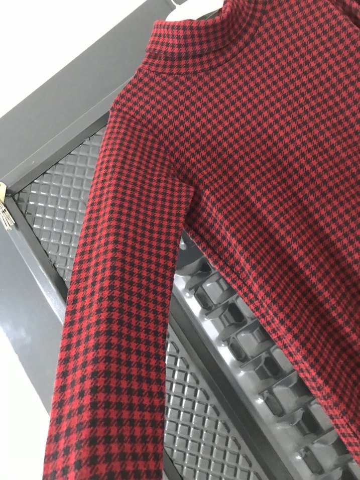 Kırmızı Kareli Balıkçı Yaka triko elbise