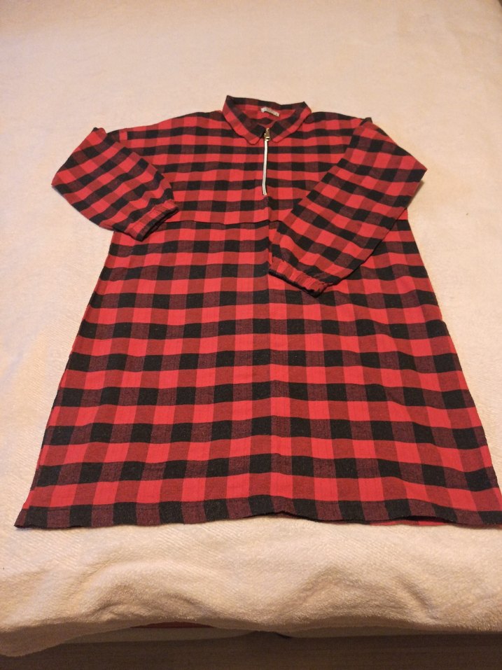 Kırmızı Kareli Fermuarlı Kadın tunik