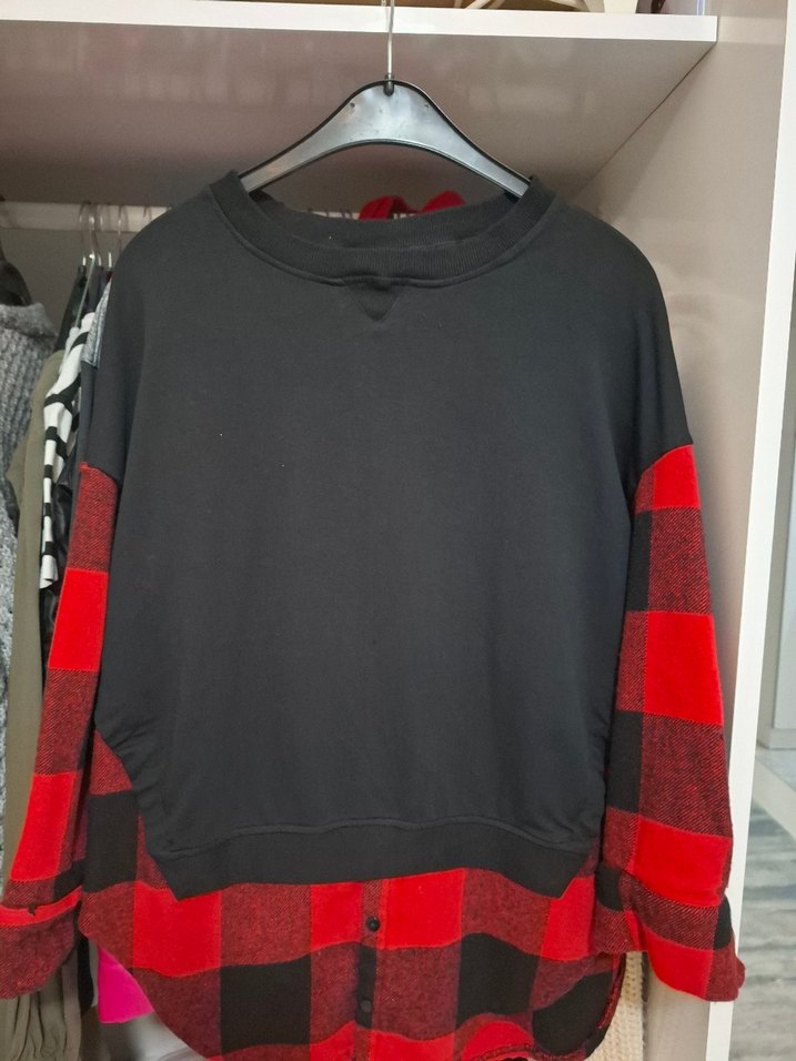 Uzun kollu, yuvarlak yakalı ve bol kesimli kadın sweatshirtü. Kırmızı siyah kareli desenli, yumuşak ve sıcak kumaştan üretilmiştir. Rahat ve günlük kullanıma uygun.