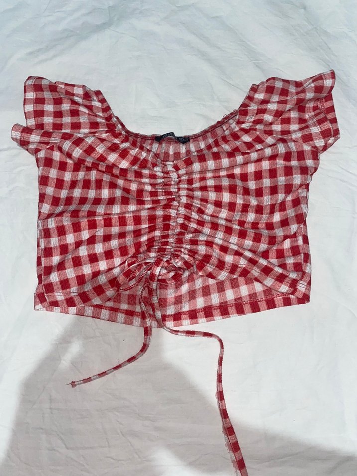 Keten kumaştan, kırmızı kareli,askılı kollu, normal boyda, vücuda oturan bluz. Bohem ve rahat bir tarz sunar. m beden ama s giyinenlere daha iyi olacaktır kalıbı dar