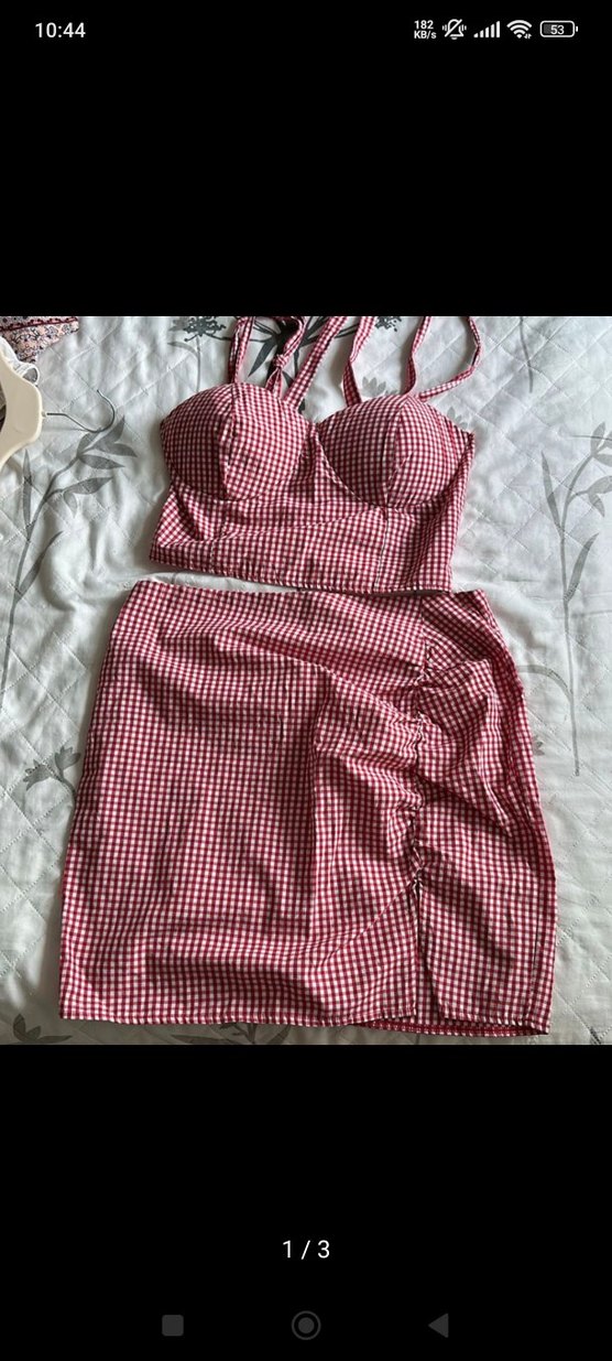 Kırmızı Kareli Mini Drapeli Kadın ikili takım