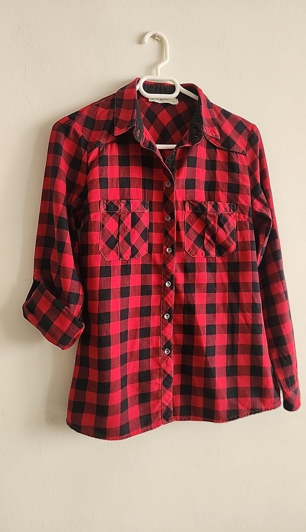 Kırmızı Kareli Pamuklu Düğmeli Kadın Gömlek