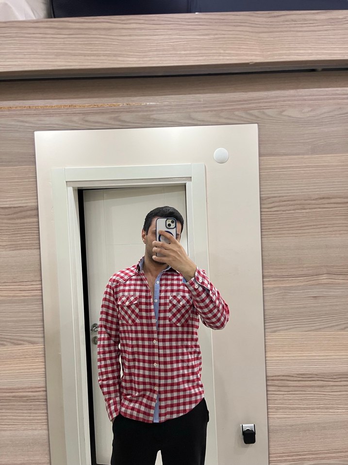 Kırmızı Kareli Pamuklu Erkek Gömlek