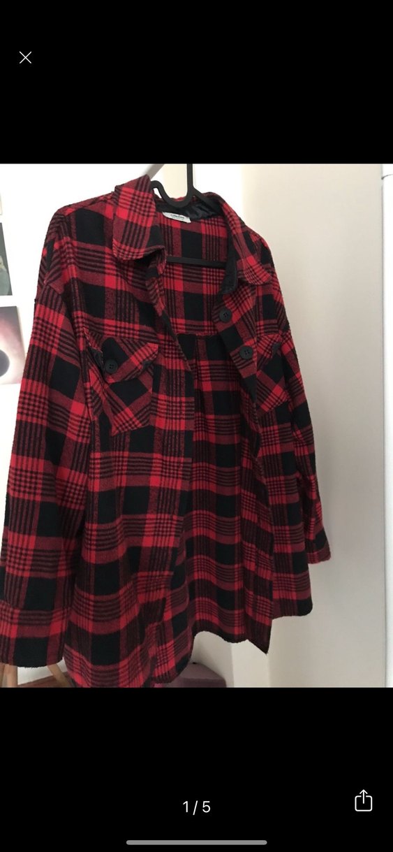 Kırmızı Kareli Uzun Kollu Ceket