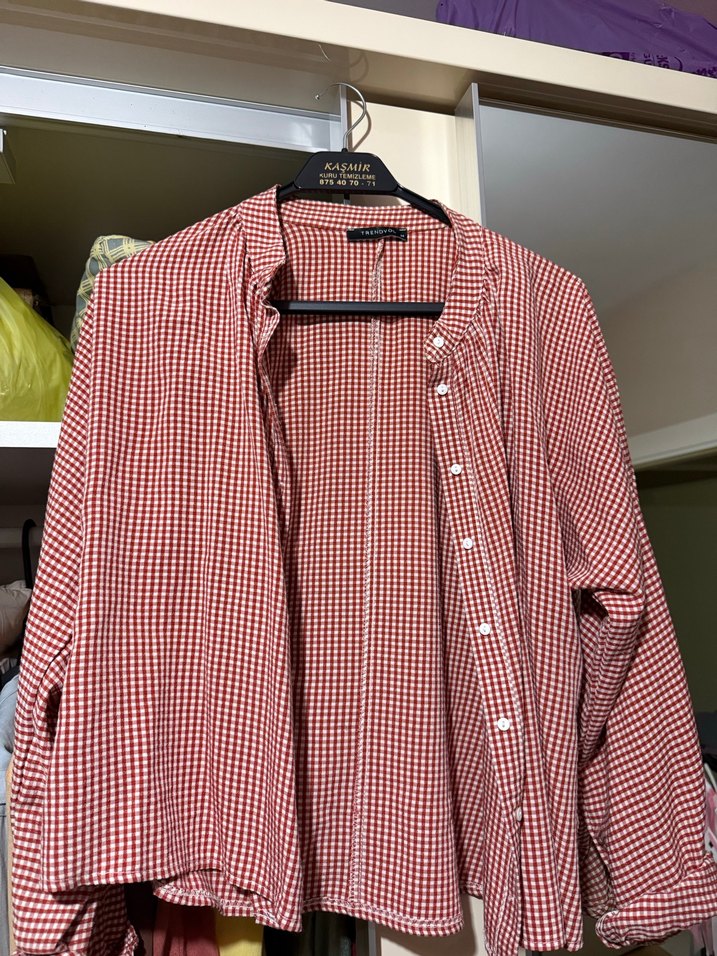 Kırmızı Kareli Uzun Kollu Kadın Gömlek