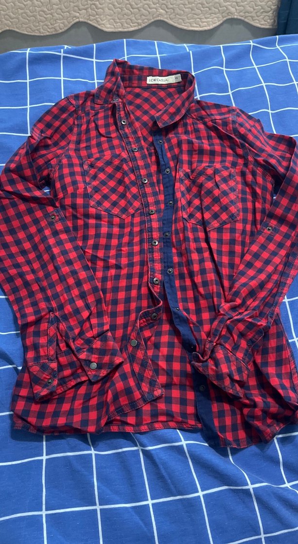 Düğmeli, uzun kollu, kırmızı kareli ve yakalı bu kadın gömleği, sokak modasına uygun dar kesimdir.