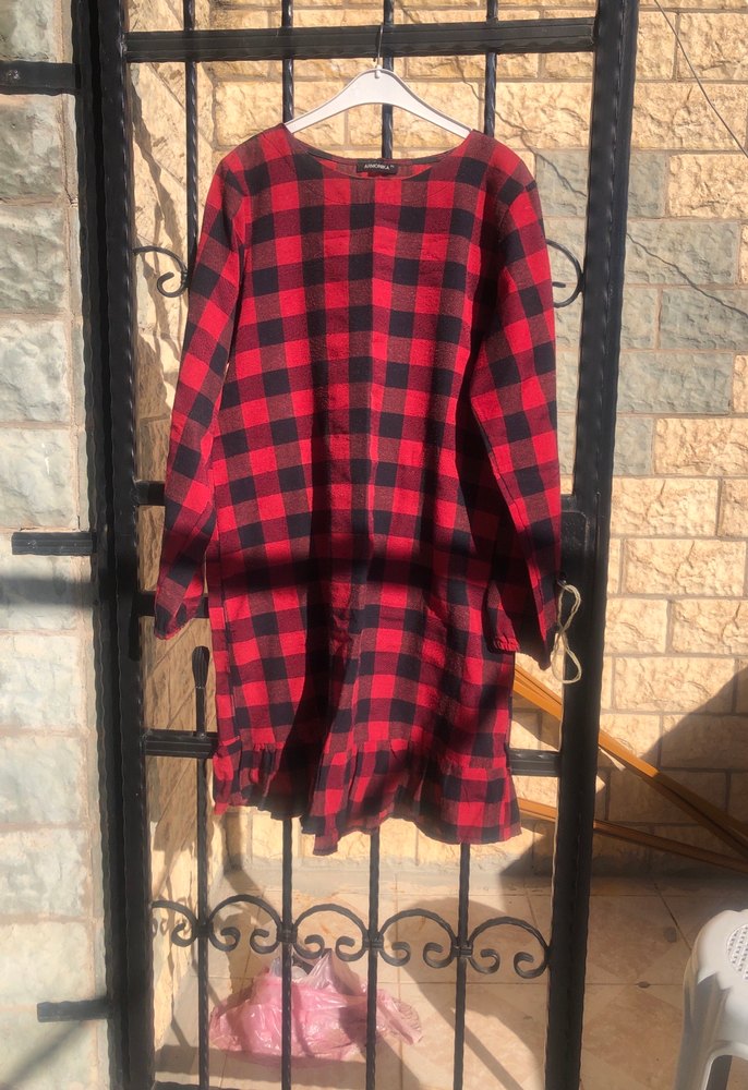 Kırmızı Kareli Uzun Kollu Kadın Tunik elbise