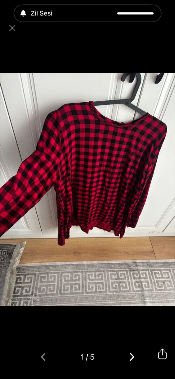 Koyu kırmızı kareli gömlek, uzun kollu ve bisiklet yaka. salaş kesim, orta uzunlukta midi boy. Yumuşak pamuklu kumaştan, günlük rahatlık için uygun. Özel dikim