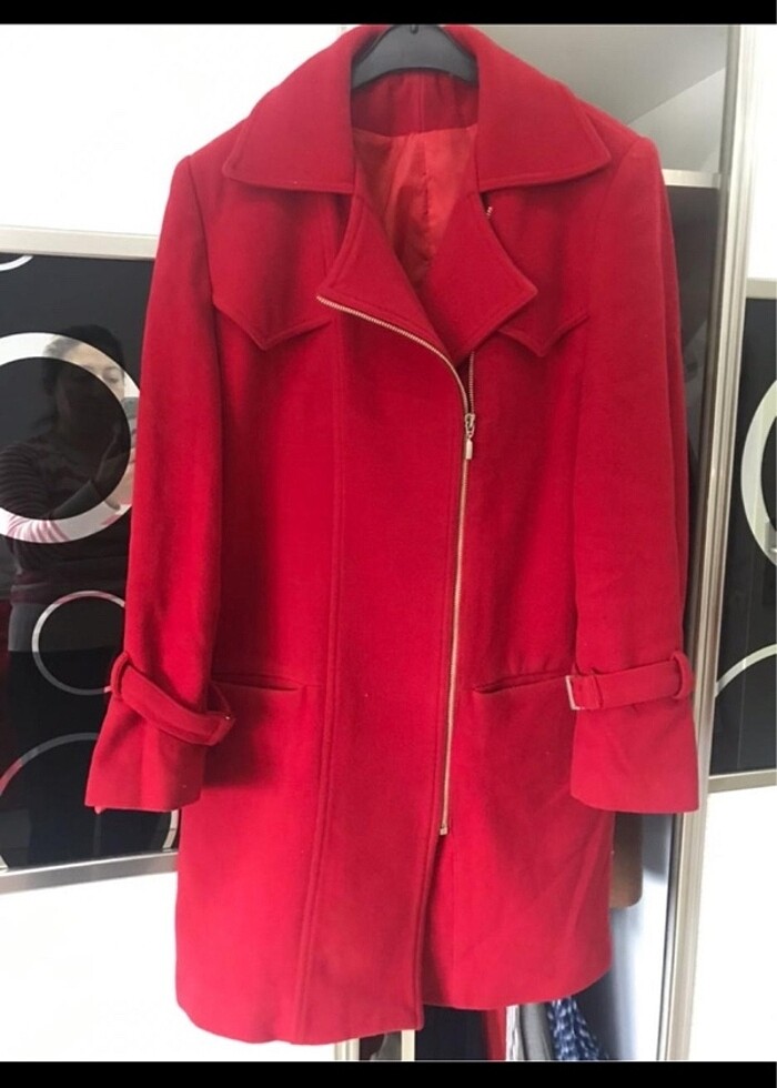 Kırmızı kaşe kaban, çok temizdir ve çok şıktır